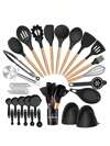 Set di 36 pezzi, 36 pezzi di utensili da cucina in silicone, set di utensili da cucina resistenti al calore con manici in legno, accessori da cucina antiaderenti, inclusi raschietti, coltelli per pizza, articoli per la cucina in offerta, accessori per la casa