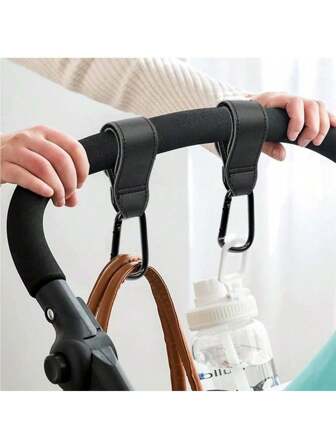 2 Ganci in pelle sintetica per passeggini per bambini, accessori per appendere con elevata capacità di carico, universali, portatili, molletta portaborse per carrozzina