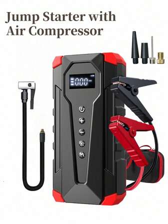 Avviatore di emergenza per auto da 5000A 150PSI con compressore d'aria, avviatore portatile per batteria auto da 12V con cavi per avviamento, display LCD e torcia a LED