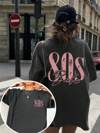 Bohemela Maglietta oversize da donna con stampa slogan e pizzo a contrasto, 2 in 1