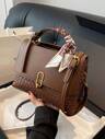 1 pezzo Borsa a spalla da donna in finta pelle alla moda, di colore unico, con texture, chiusura con fibbia, fodera in poliestere, bordi rivestiti, borsa a tracolla con tracolla