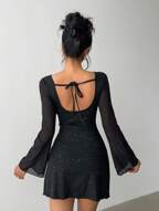 Aloruh Abito attillato mini con schiena scoperta, collo alto e maniche a pipistrello alla moda per le donne