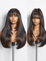 Parrucca lunga dritta di colore caramello per donne, 61 cm, senza colla, sintetica realistica, con frangia, resistente al calore, con strati naturali, adatta per uso quotidiano, feste e cosplay