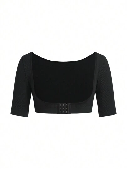SHAPORA لباس علوي ضيق موحدة اللون - الأسود - مشاهدة 2