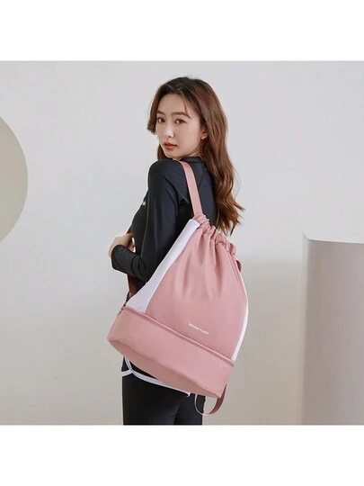 حقيبة سباحة لفصل الجاف والمبلل، لون أحادي بسيط من البوليستر، حقيبة تخزين عمودية، حقيبة ظهر رياضية للرمال و اللياقة البدنية، مقاومة للماء - وردي - مشاهدة 2