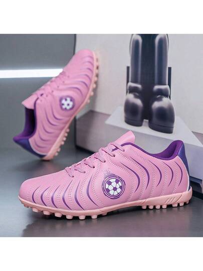 أحذية كرة قدم/كرة قدم للبالغين غير محددة الجنس، أحذية مناسبة للشجر الصناعي والأماكن المغلقة، منخفضة القدم، أحذية ملاعب وردية اللون - وردي - مشاهدة 1