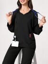 PopScrub ملابس علوية أزرق للنساء بياقة على شكل حرف V وأكمام قصيرة وجيبين، مطبوع عليه رسوم كرتونية لمخلوقات بحرية، بدلة ممرضة/طبيب، لون أحادي لبدلة عمل تجميل الحيوانات الأليفة، بدلة عمل للاختصاصي التغذية، معطف مختبر وظيفي متعدد الجيوب، بدلة عمل احتفالية جميلة وفرحة