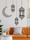 ورقة ملصق جداري بنمط القمر والفانوس، ملصق جداري أسود بسيط قابل للإزالة لغرفة النوم وغرفة المعيشة وخلفية حائط التلفاز، ديكورات منزلية، ملصقات، ملصق جداري، ملصق فينيل لديكورات المنزل، عناصر ديكور الربيع لتجديد منزلك، ملصقات ديكور رامة