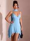 SHEIN BAE فستان قصير أنيق بياقة على شكل حرف V عميقة باللون الأسود الداكن مع شريط، مناسب للاستخدام اليومي، الخروج ليلاً، النوادي الليلية، الحفلات، التجمعات، حفلات الكوكتيل، بدلات العطلات، حفلات المسبح، ملابس المكتب، فساتين التنقل