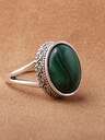 1個 ファッショナブルな女性用合金メッキ ヴィンテージシルバー オーバル フォーク ジェムストーンリング