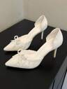 2025年秋冬/2024年春夏 新作 ラインストーン付き尖った つま先 ハイヒールサンダル リボン&透明ストラップ バレンタイン エレガント レディースパンプス ウェディングアウトフィット