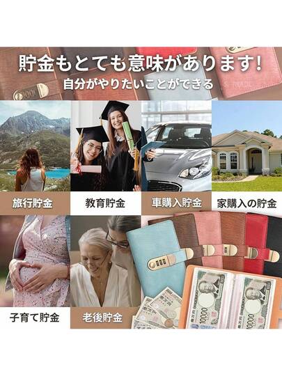 お札、お金の仕分け、封筒貯蓄銀行、ファイルバインダー、ダイヤルロック、取扱説明書付き、貯蓄計画、防災グッズ(中ページ、50ページ、現金シート枚積み重ね可能)(ブラック) - ブラック - 見る 11