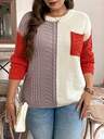 EMERY ROSE プラスサイズ女性用プリーツコントラストカラーカジュアルターンダウンカラー長袖Tシャツ