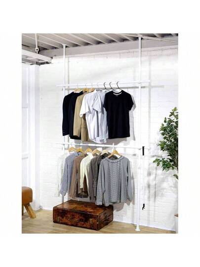 突っ張り ラック ポールハンガー ハンガーラック 全体耐荷重60kg シャツ最大90着 ひっかけ棒付き ワンタッチ突っ張り (実用新案取得済) 縦横伸縮 (幅90 - 160cm/高さ190 - 260cm) 衣類収納 組立品 マットホワイト WJ - 775RM(MWH) ダブル - マットホワイト + ダブル - 見る 1