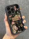 1個 油絵の花のスローガンレトロプリント2Dパターンクリエイティブファッショナブルな中東スタイルのミニマリスト漫画かわいい油絵の花のギフト年長者、友人、家族、カップル、誕生日、休日に最適、黒のつや消しソフトケース保護、iPhone 16/15/14/13/12/11/Pro/ProMax/X/XR/XS/XSMAX/7/8/PLUSおよびモデルに対応防水耐衝撃落下防止傷防止