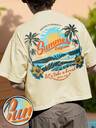 Manfinity Chillmode Manfinity チルモード メンズ プリント半袖サマーTシャツ、バックにビーチホリデーパターン付き