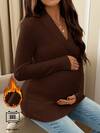 SHEIN 秋服、マタニティ秋服、マタニティ無地オーバーラップVネック長袖フィットしたファッショナブルなセーターマタニティシャツ、マタニティ服秋冬妊婦服ベージュマタニティシャツマタニティトップス授乳マタニティシャツ
