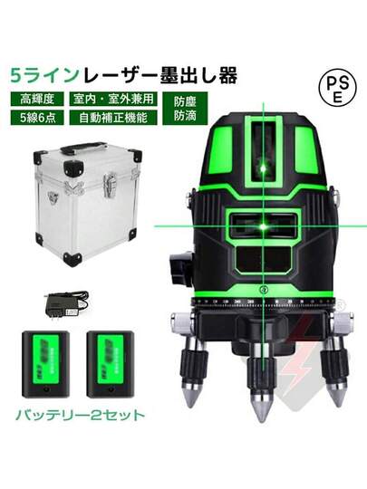レーザー墨出し器 5ライン 12ライン グリーンレーザー墨出し器 水平器 レーザーレベル 軽量 防滴 防水 防塵 4方向大矩ライン照射モデル フルライン 高輝度 レーザー 墨出器 墨出し 墨だし器  PSE認証済み 1年保証 SHINPURU - 5行レベル - 見る 5