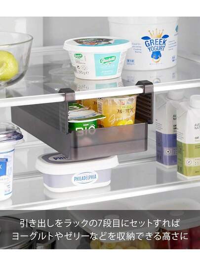 冷蔵庫中 棚下 高さ調節 ラック S ブラック W14.5×D34.4×H6.5cm タワー tower 冷蔵庫収納 引き出し 吊り下げ 7段階調節 スライドトレイ対応 10107 - 1 - 見る 7