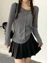 コントラストストライプ アシンメトリーショルダー 長袖ニットセーター