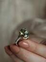 1個 S925スターリングシルバー オーバル グリーンジルコニア レトロエレガントリング、女性への万能ジュエリーギフト、日常着、祭り、パーティーに適しています