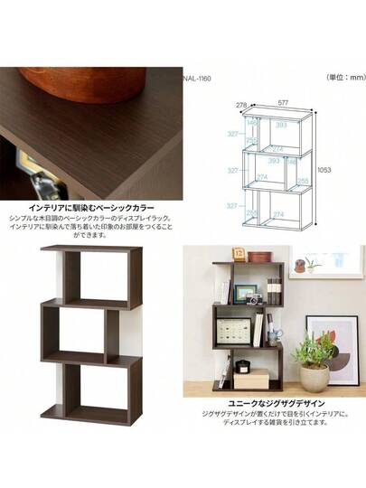 白井产业 展示架 架子 宽58厘米 高106厘米 深棕色 S字 装饰架 隔板 背面装饰 搁板 书架 Noalis NAL-1160DK - 写真の通り - 見る 8