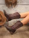 FVPFVP 2024年新作 ブラウン ダメージ加工 カウボーイ ライディングブーツ レディース、レトロスタイル ハイシャフト ブーツ、カーディガンと合わせてセクシーでファッショナブル