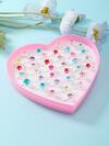 子供用リング 50個セット、女の子用プリンセス風ジェムストーンリング、プラスチック製キッズリング、クリスタルダイヤモンド、ホリデーパーティー用ジュエリーボックス