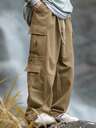 Manfinity Roghcode メンズルーズフィットカーゴパンツ、フラップポケット、サイド紐ウエスト、秋用
