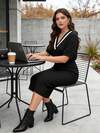 GlowEve CURVE プラスサイズ エレガントVネック ドロップショルダー 長袖 プルオーバー セーター