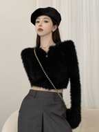 女性用 フード付き ニットセーターカーディガン 柔らかい ファー襟 ゆったりシルエット スリム 秋向け