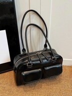 1個 FEISTURE 無地 PU マルチポケット ボーリングバッグ、斜めがけ/脇下 レディースバッグ(フェイクパールチャーム付) ショッピング、デート、女性へのギフトに最適、ティーンエイジャー、大学生、初心者、オフィスワーカーにも、オフィス、大学、仕事、通勤に最適、彼女への完璧なバレンタインデーのギフト、最高のバレンタインギフトの選択