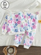 冬用 コーラルフリース フローラル装飾ベロア ナイトガウン、冬暖かいバスローブ、愛らしい長袖Vネック ポケット付きナイトガウン、秋冬レディースパジャマセット、ロングベロアバスローブ ホームウェアコート 厚手スタイル、秋冬シーズンの必需品ホームウェア 寒い冬を一緒に過ごす、クリスマスギフト、誕生日ギフト