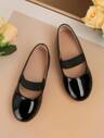 1ペア キュートな無地特許皮革 ラインストーンデコ付き 滑り止め フラット 女児用 屋外シューズ