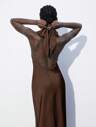 Maija 도시적이고 우아한 민소매 백리스 롱 드레스, 캐주얼, 파티, 휴가, 빈티지 스타일에 적합, 가을/겨울