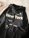 Manfinity Roghcode 남성용 오버사이즈 테디 베어 플리스 드로스트링 후드 스웨트셔츠, 드롭 숄더 및 레터 자수, 가을/겨울, 긴소매 탑
