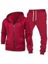 2개 남성 캐주얼 스포츠 지퍼업 후드 재킷 및 드로스트링 허리 탄성 커프스 바지 세트