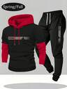 2개 세트 새로운 가을과 겨울 남성용 긴팔 후드 스웨트셔츠, 다채로운 리본 레터 프린트와 탄성 허리 드로스트링 바지, 레저, 스포츠, 여행, 휴가, 피트니스, 달리기 및 커플 의상용.