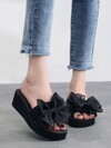 리본 장식 슬라이드, 여성용 블랙 슬리퍼, 비치웨어