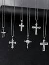 1개 유니섹스 럭셔리 구리 지르코니아 펑크 스타일, 멀티 스타일 십자가 펜던트 종교 목걸이, 미니멀리스트 할로우 십자가 목걸이, 조절 가능한 체인 길이, 모임, 파티, 휴일, 새해 주얼리 선물에 적합