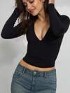 DAZY 여성용 브이넥 트위스트 프론트 짧은 소매 핏팅 크롭트 티셔츠