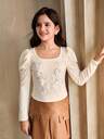 Anewsta Pull en tricot uni décontracté pour femme, brodé de fleurs 3D, fait main, idéal pour l'automne, l'hiver, les occasions élégantes, les loisirs, les occasions formelles, les fêtes, la mode, le Nouvel An, Noël, le travail, l'obtention d'un diplôme ou un mariage.
