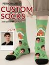 1 paire de chaussettes mi-mollet personnalisables avec impression de visage pour hommes, peut imprimer n'importe quel portrait sur les chaussettes, chaussettes photo personnalisées, image personnalisée amusante associée à des chaussettes mi-longueur, convient pour la Saint-Valentin, l'anniversaire, les cadeaux et autres occasions, colorées, mignonnes, adorables, minimalistes, drôles, personnalisées, uniques, personnalisées, un cadeau idéal pour lui, elle, le petit ami, la petite amie, la famille, les amis, les grands-parents, à la mode pour l'automne, style urbain chic, pour la famille