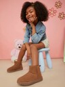 Mini mi #LittleRider Bottes de cow-boy mi-mollet de couleur tan, avec bout carré, languettes de traction facile et talon bloc bas. Design avec coutures classiques pour l'aventure et le style de tous les jours