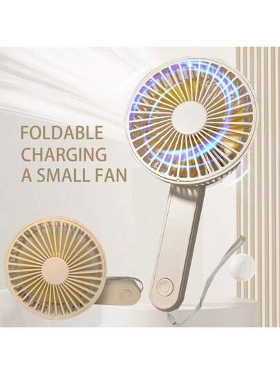 Un ventilateur manuel pliable avec cordon de suspension, beige. Mini ventilateur portatif à batterie rechargeable, ventilateur de bureau personnel puissant à 3 vitesses. Convient pour femme, homme, maison, bureau, maquillage, extérieur, voyage. - Multicolore - Voir 1