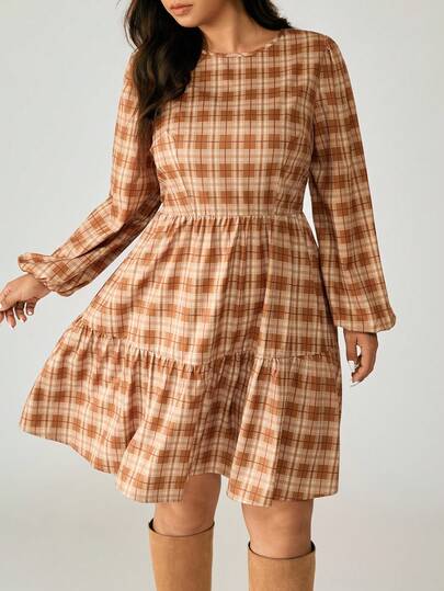 Nubod Robe à carreaux volantée grande taille - Multicolore - Voir 1