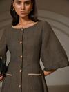 Xyvia Robe longue plissée à col en V vert olive pour femmes avec boutons pour une tenue de bureau décontractée, une sortie, une fête, un mariage élégant, Halloween, Noël, Nouvel An. Vêtements d'automne et d'hiver. Robe de luxe