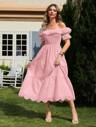 Simplee Robe de soirée élégante à épaules dénudées avec patchwork de sequins et maille pour femmes, robe d'anniversaire, robe de remise des diplômes, robe de Noël