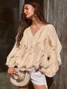 Simplee Robe courte élégante pour femmes avec manches bouffantes en dentelle, à simple boutonnage et volants. Convient pour les invités de mariage, les fêtes, la remise des diplômes, les anniversaires