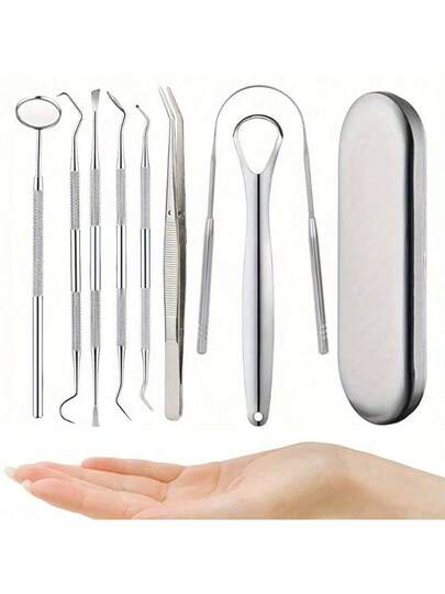 Nettoyeur de cure-dents en acier inoxydable, grattoir de langue en acier inoxydable pour les mauvaises halèines, outil de soins bucco-dentaires convenant à un usage personnel et pour animaux de compagnie - Argent - Voir 8